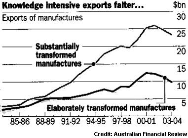 The bottom line is a ballooning balance of trade deficit in ETMs that hit $75.4 billion in 2003-04, dwarfing primary industry exports of $62 billion.