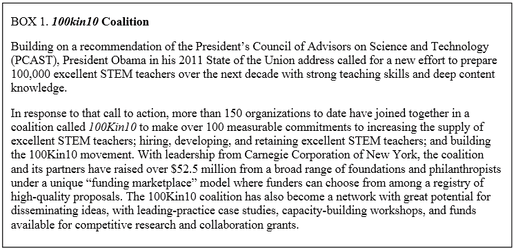 goal to prepare 100,000 excellent STEM teachers over the next decade in his 2011